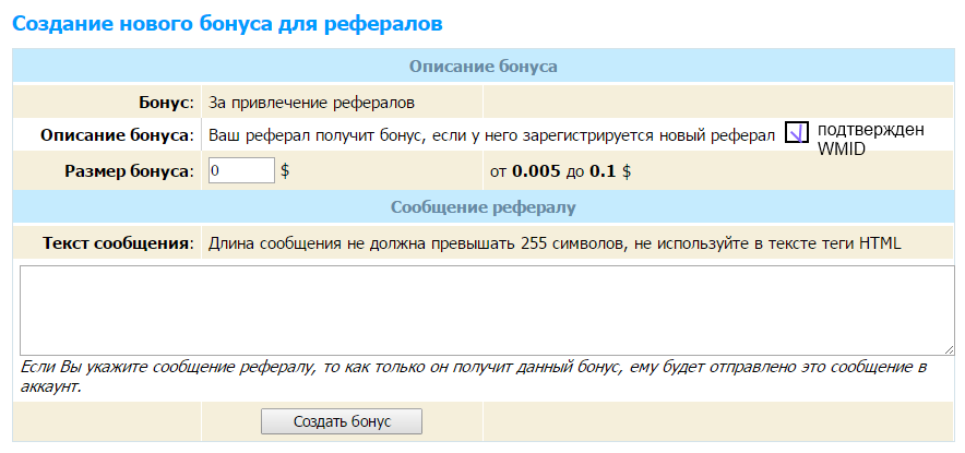 Насчёт ставить или нет - это правильно, но этим бонусом вряд ли привлечёшь рефералов. Поэтому и предложена эта идея, чтобы было больше рефереров заинтересованных в выплате этого бонуса.